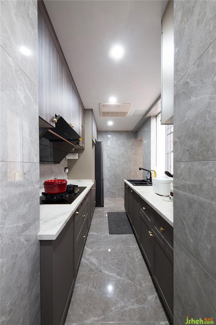 白色的热气从锅中不停溢出,勾人的菜香飘渺……置身于黑、白、木色构成的厨房,真是一场甜蜜且可口的邂逅。