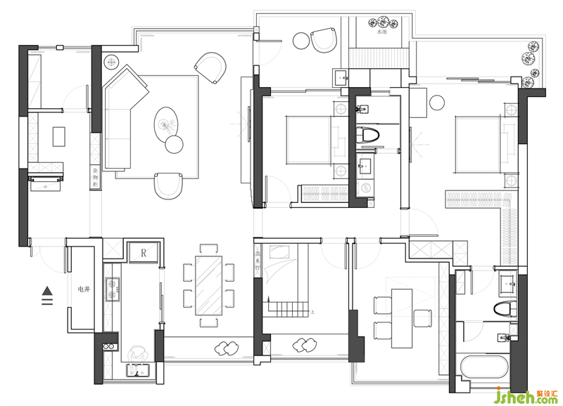 “买房看景观、设计看眼缘”,听上去似乎不太符合银行人的人设?但仔细一想,却有几分透过现象看本质的意思。本案业主对房子的户型、朝向、景观等都比较满意,希望装修后既能有超强的收纳功能,看上去又是简约大气、上档次的。