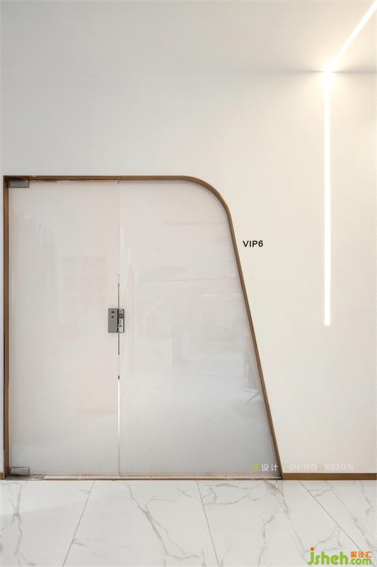 VIP室以电子雾化玻璃隔断,自成边界却也在打破边界,使空间更显通透的同时也能保有隐私性。墙面以必要物件的有机连接满足装饰性,金属、石材、镜面等元素架构起室内独特的艺术骨感,无需繁杂的点缀,已将轻奢风情演绎得淋漓尽致。