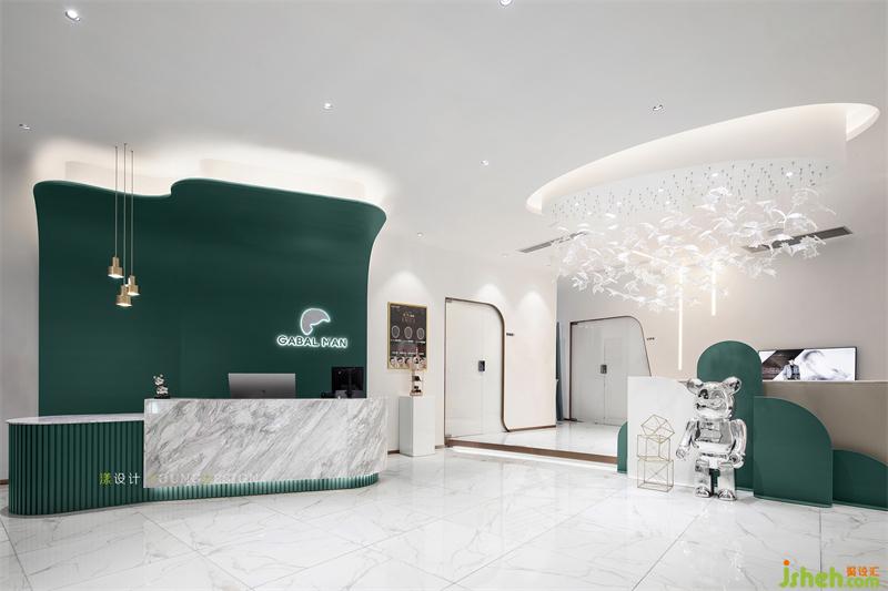 不同VIP室结合室内空间的尺寸与朝向,用最简洁的店铺装修设计手法进行创作,以复古绿+金属为主要元素,穿插运用镜面和石材,凭借材料本身的造型与质感,描绘出丰富的动态空间效果。