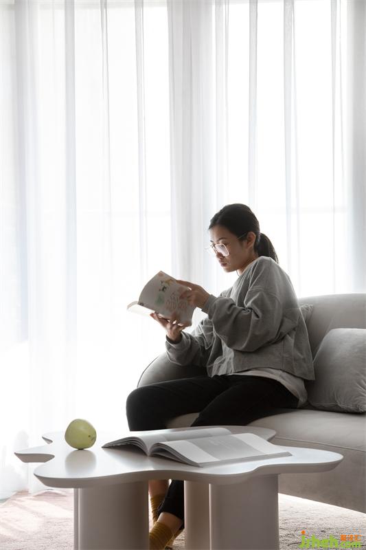 柔软细腻的绒面手工地毯,搭配奶白色烤漆异形茶几,简约中不失浪漫清雅。在落地窗边清风抚来时刻,轻松且惬意。白色纱帘宛如思绪纷飞,享受此刻的放空与美好。