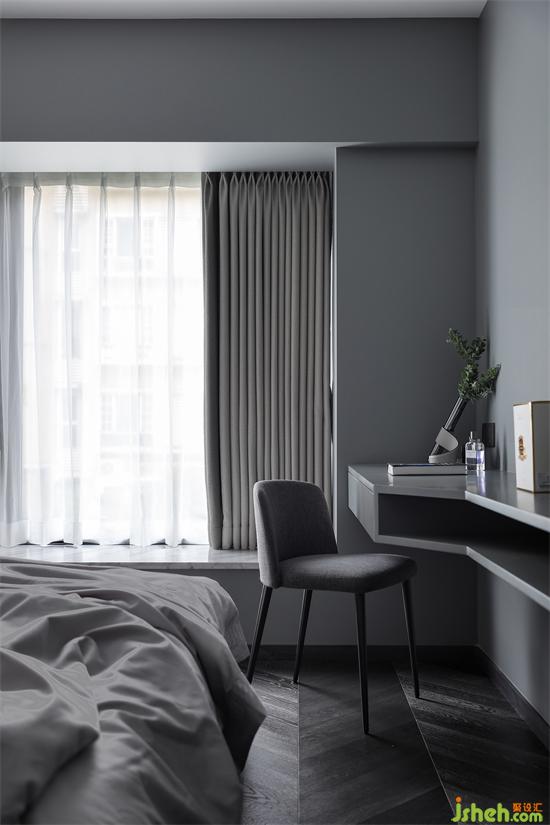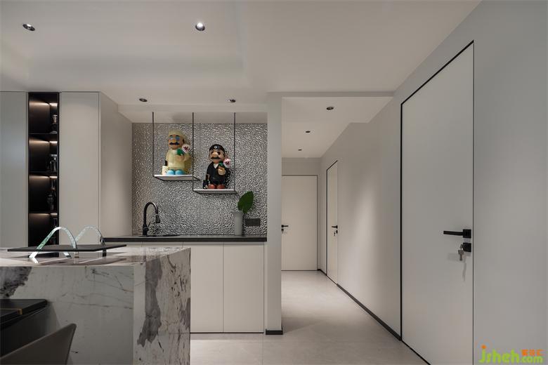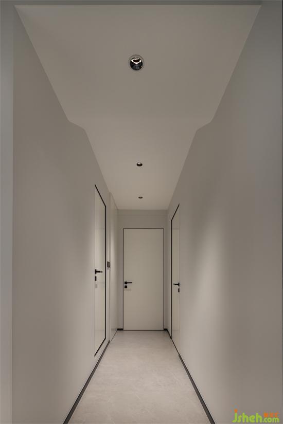 过道区域线条感十足,房门都是极窄边框的设计,和内嵌踢脚线相呼应,深圳家装设计黑白灰中性色塑造简约的科技感。告别千篇一律,每一处细节都赋予灵性的质感。