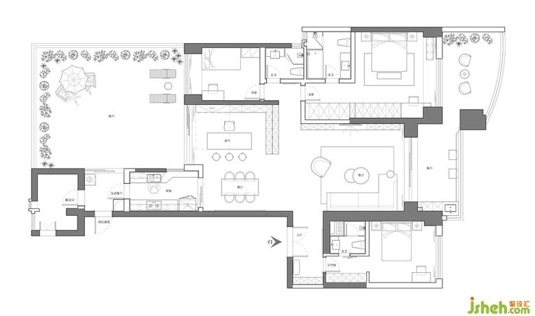 ➍对现有空间进行重塑,利用赠送区域构建全新开放平台,私享超大阳台。