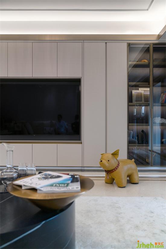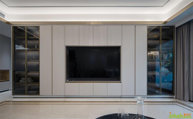 ➌深圳家装设计拆除大理石电视背景墙和部分线条装饰,以满墙收纳柜取而代之,既增加收纳空间,又能优化格局。