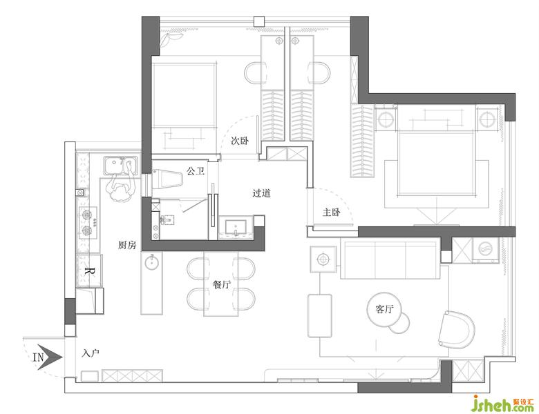 ❶改三房为两房,为主卧打造一间专属衣帽间。