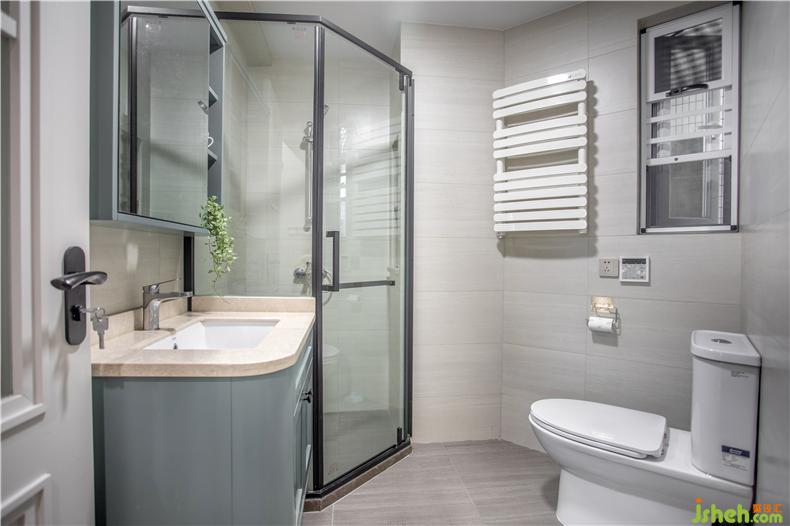 异形的空间一点都不妨碍我们把每一个角落合理利用,镜柜的设置可以收纳零碎的瓶瓶罐罐,在这里洗去一天奔波的疲惫。
