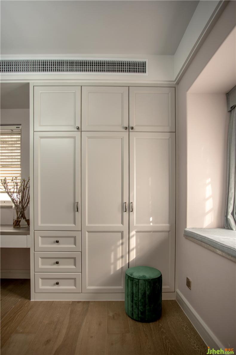 一进主卧就是能容纳主人所有衣物的超大衣柜,同时也作为隔断把衣帽间和休息区域分割开来,保证了休息区域的私密性和安静。