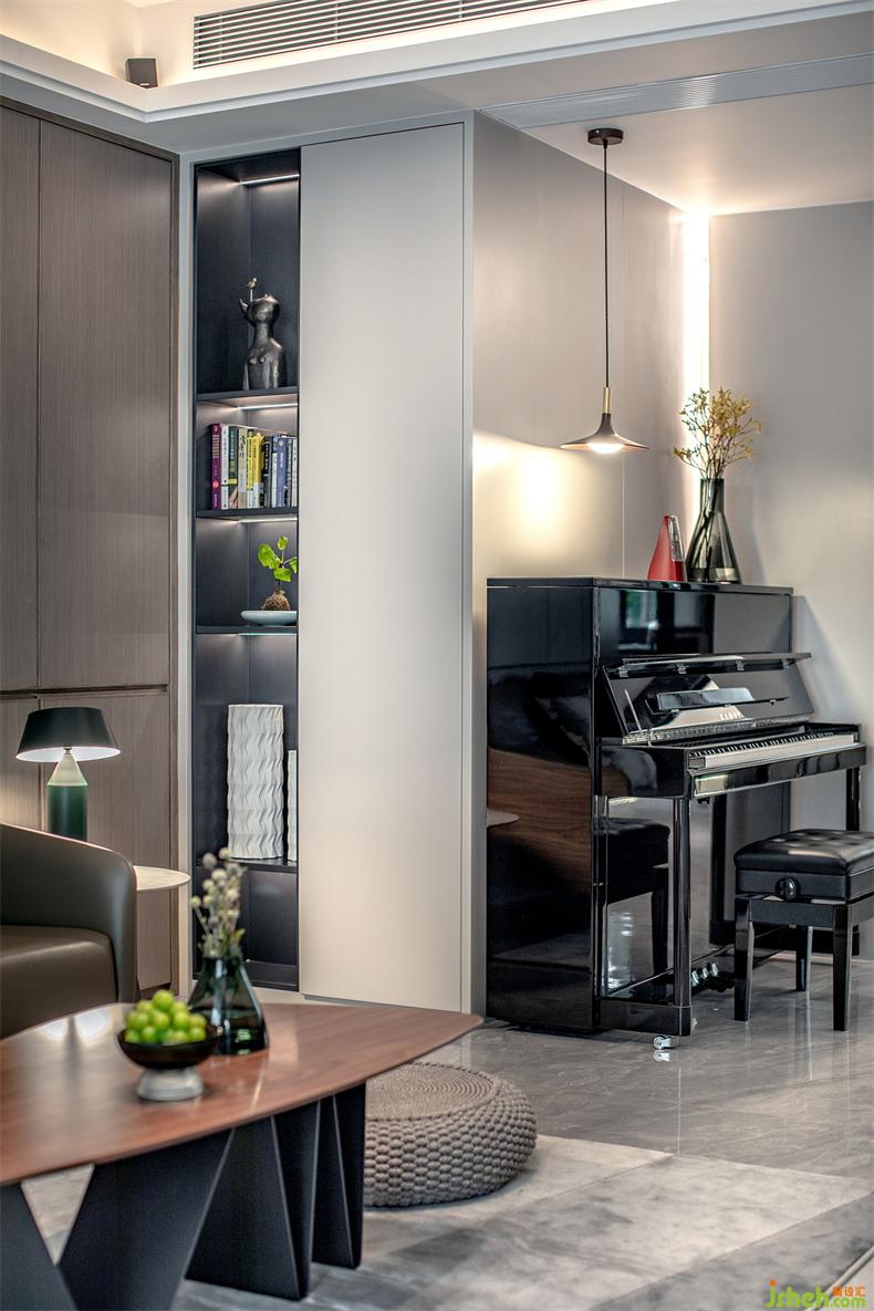 鞋帽柜旁边正好可以嵌入一架钢琴,对面是正在生长的绿植和行走的时间,在简单的画面里,用一曲旋律应对岁月匆匆,温柔至极。