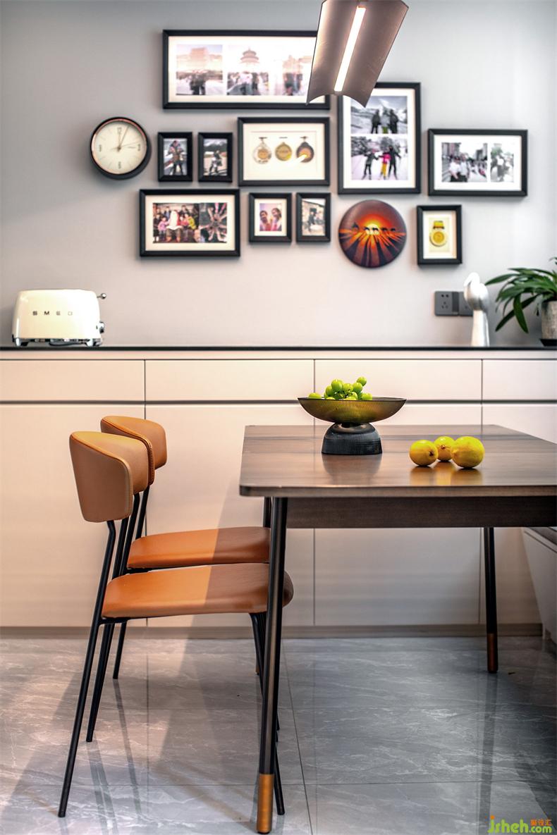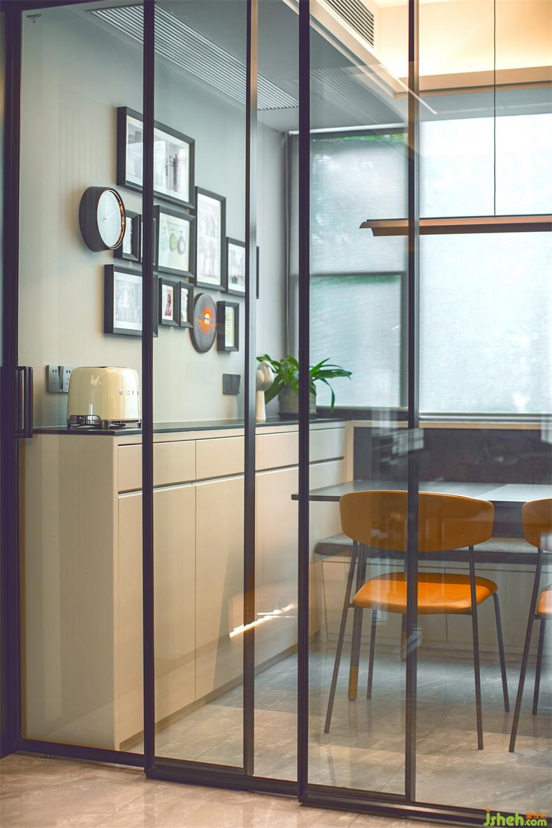 材质与色彩的选择会让空间多了一层想象,同时过渡着主空间的功能区。从客厅到餐厅、从黑白灰到木色、橙色,从一株草木到一幅画作,玄关就像一个缓冲区,是进入家门后带来的轻松感,室内设计师是穿行动线时自然而生的欢喜。