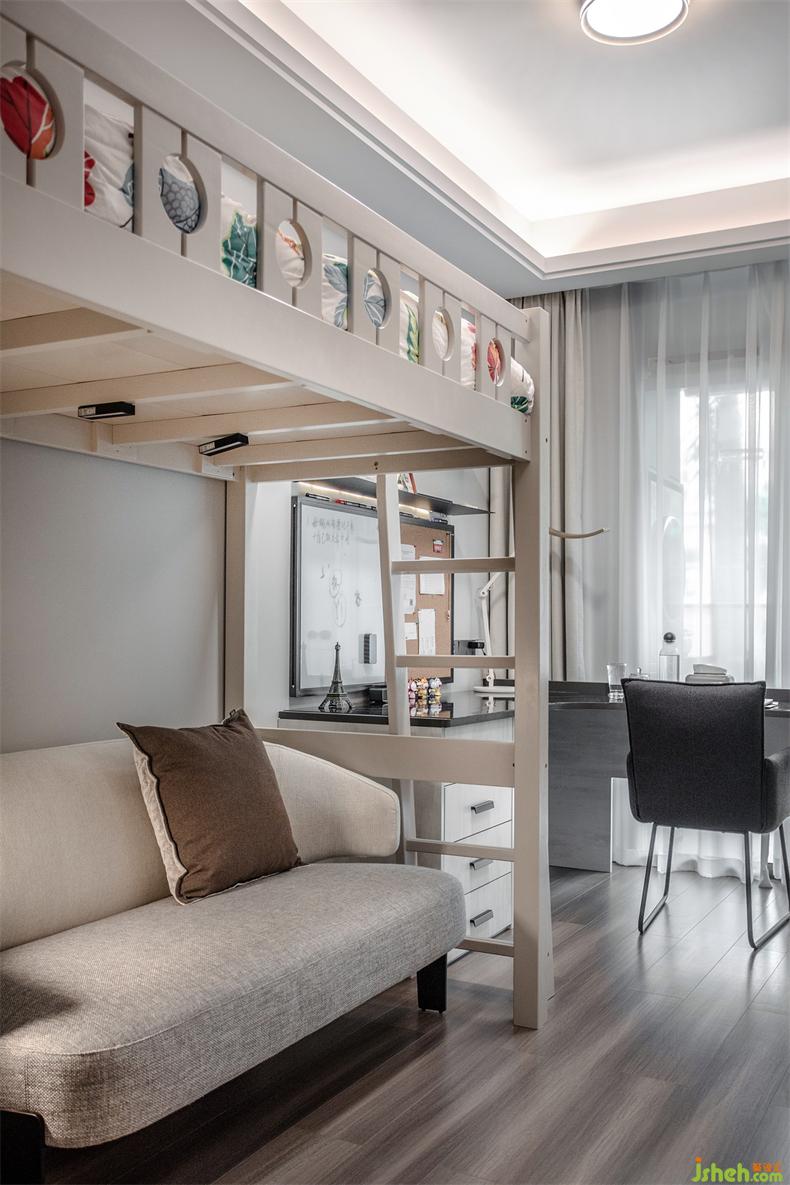 业主说,女儿以后毕业了工作了,也不一定会经常回家,室内设计师所以女儿房的设计随性但不随意,上下床、L型书桌和方格书柜,都是既保证了她成长和生活的实际需求,也在有限的面积里,尽可能的满足私人空间的完善性和舒适度。