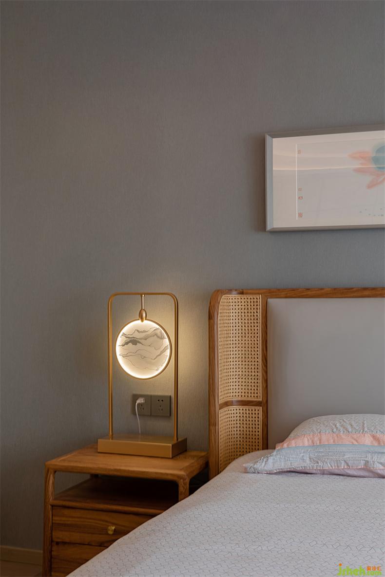 山河墨卷以各种形式连绵在空间里,一幅画作、一种材质的纹理,室内设计师甚至餐桌细节处,对应窗外,仿佛自然没有了界限。中国人自古就寄情于山水,哪怕寥寥几笔足以将内心的思绪借以表达,主卧便是如此,简雅为上,自然包裹,让人不由而然的放松下来。床头灯似玉映照山涧,荷花影朦胧清丽脱俗,藤珊巧围,木色温暖柔和,室内设计师线条呈优雅仪态。