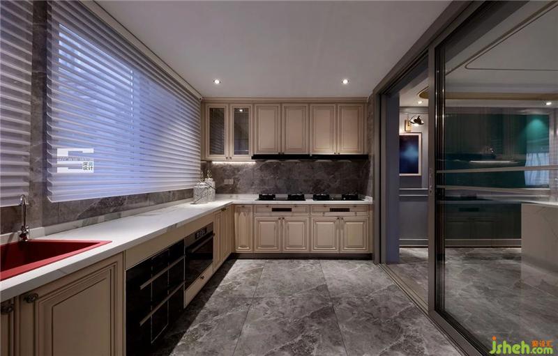 镜头切换到餐厅的另一角,是富有情调的西厨,紧挨着西厨的是中厨。
