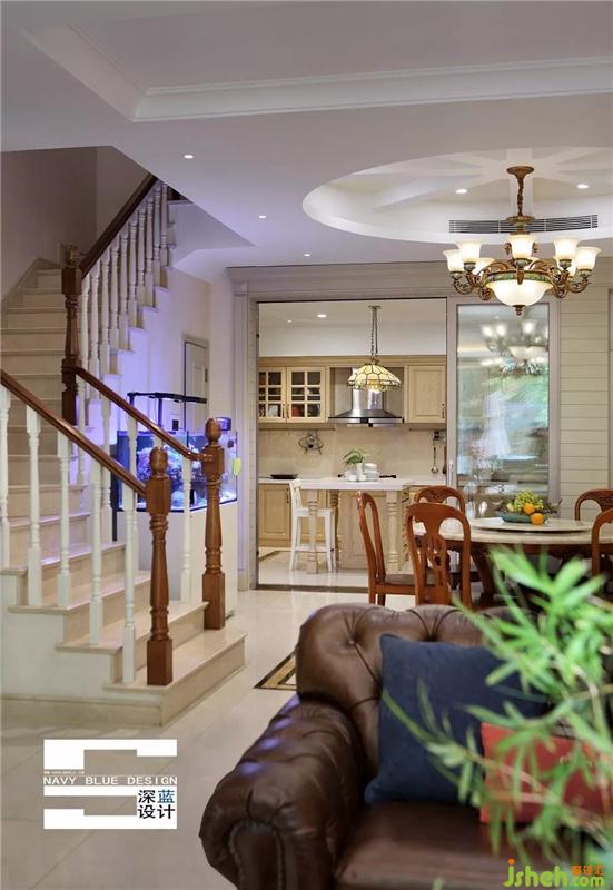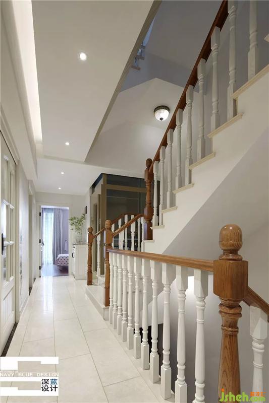 乳白栏杆,咖色扶手,彰显了美式居家的复古感。拾级而上,从不乏人间烟火的厨房和餐厅,走入归于平静的卧室空间。