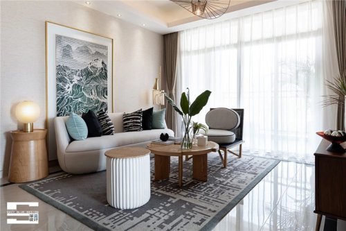 客厅与餐厨区域开放相连,一方一圆的吊顶设计牵引着整个空间的动线,传统圆桌回归了淳朴的中式饮食习惯,三代同堂,围桌而坐,和睦的家庭氛围维系着情感纽带,餐厅一角的水族箱,更为一家人的饮食生活装点了趣味。