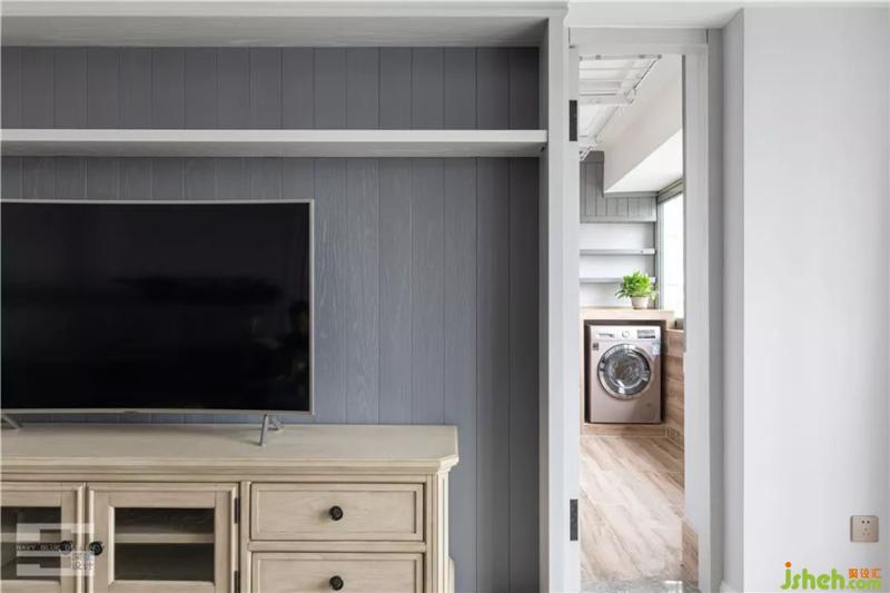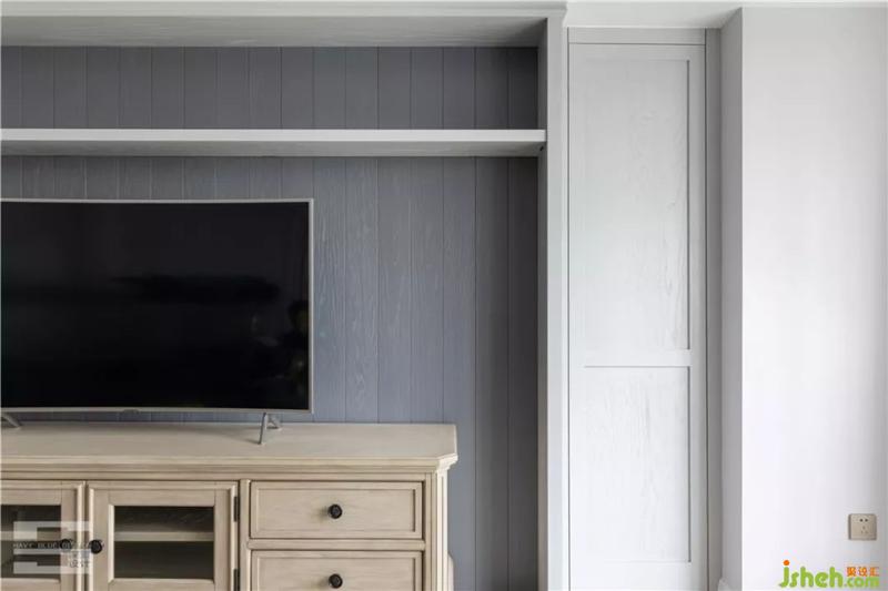灰色护墙板铺满整个电视背景墙,没有多余的装饰,简明干净。
