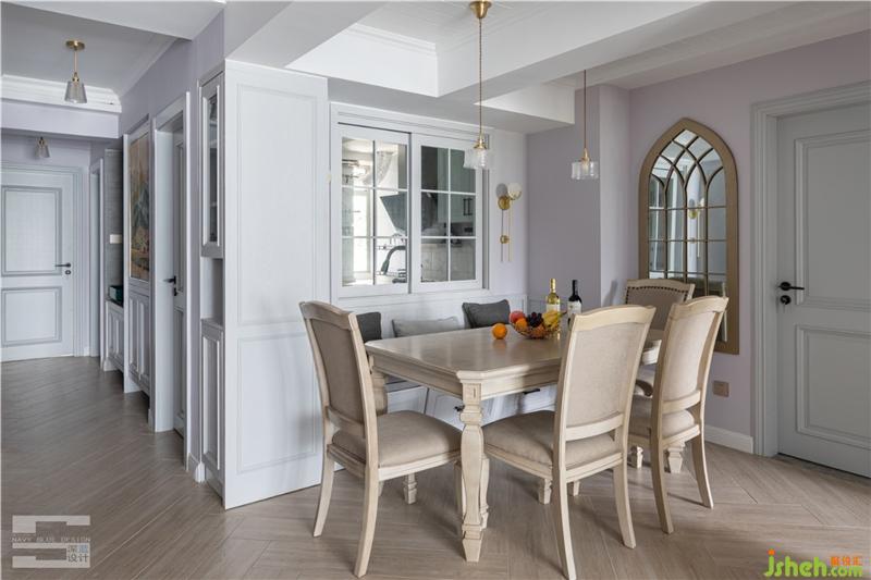 餐厅和厨房之间改了一面墙做半窗,房间门口的过道做成了餐厅,这样既合理的利用了空间,又增加了采光,增加家庭互动性。
