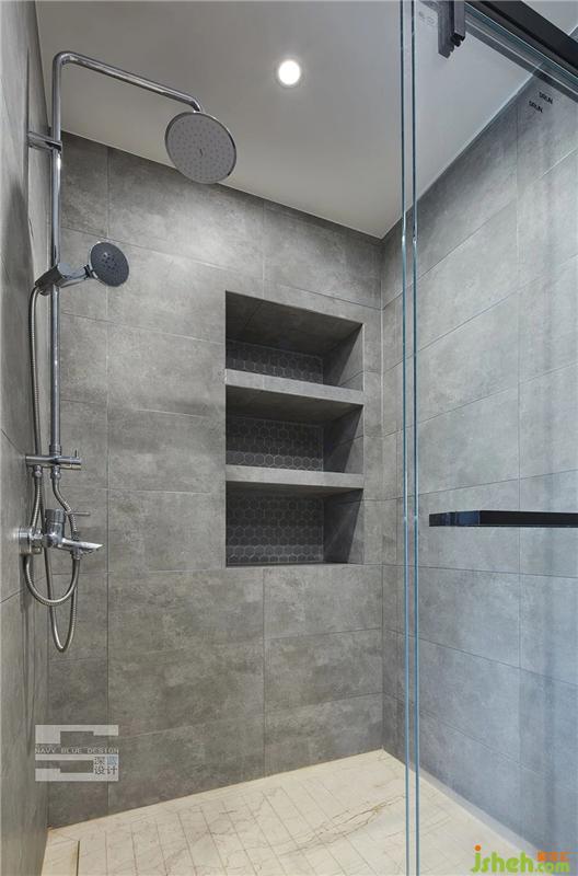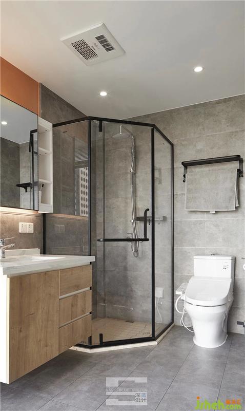 干湿分离的次卫,浅色系色墙砖铺贴的整面墙,与原木色相得益彰,提高空间明亮度的同时,也使空间不再单调无味。室内设计师