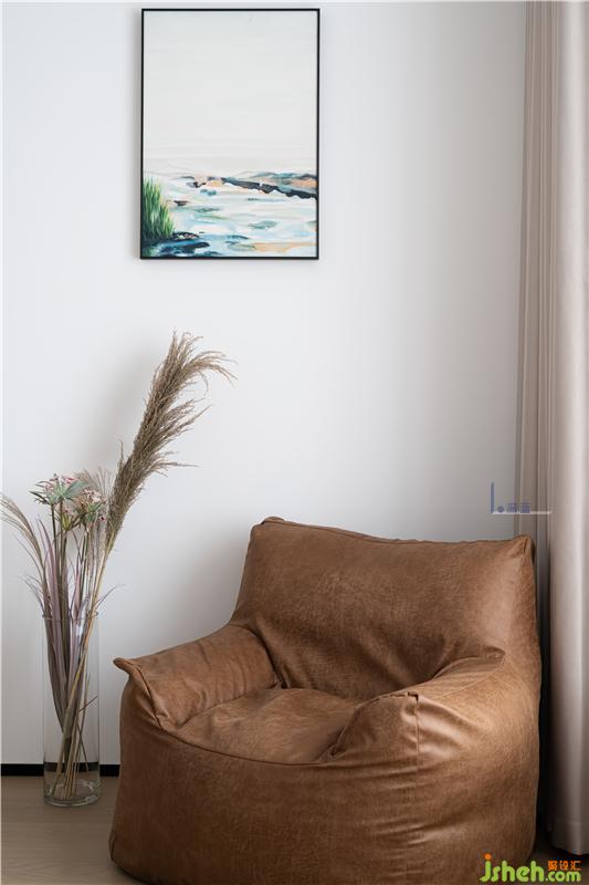 主卧一角放上休闲沙发。其实在卧室里面有张舒服的沙发是非常重要的。卧室不仅仅是睡眠空间,也可以坐在角落安静的翻开一本书。