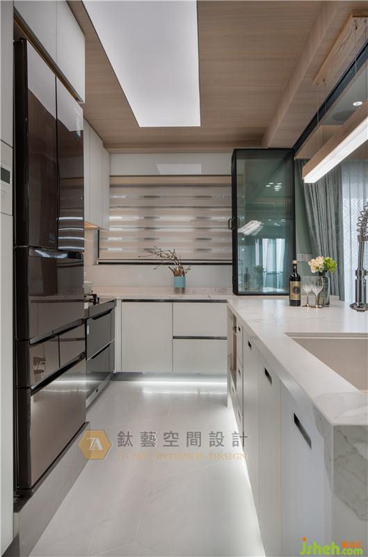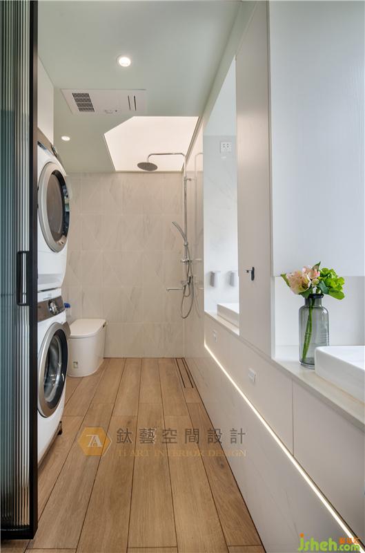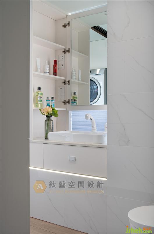 窗,留住光影虚实的痕迹,让空间拥有不同层次的表现,回应使用者对于空间完美使用的渴望,卫生间飘窗原只是作为简单的物件盛放处,经过巧妙的变思后实现华丽变身,素净的白色镜柜与简雅而高品质的洁具一体化设计,大大节省了空间,增强了收纳功能的同时镜柜的设计还保留原有空间采光及窗外美景。装修设计