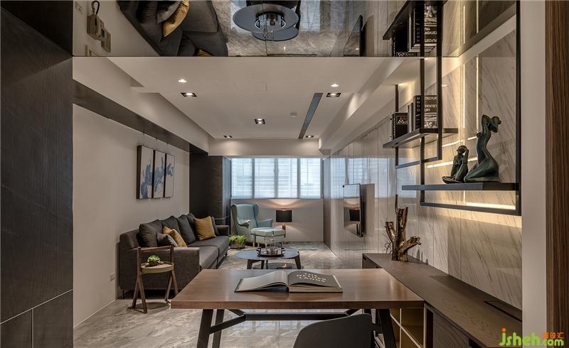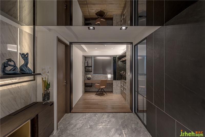 透过异材质做场域的分割,将主人位的空间作了适当的定义。室内设计师