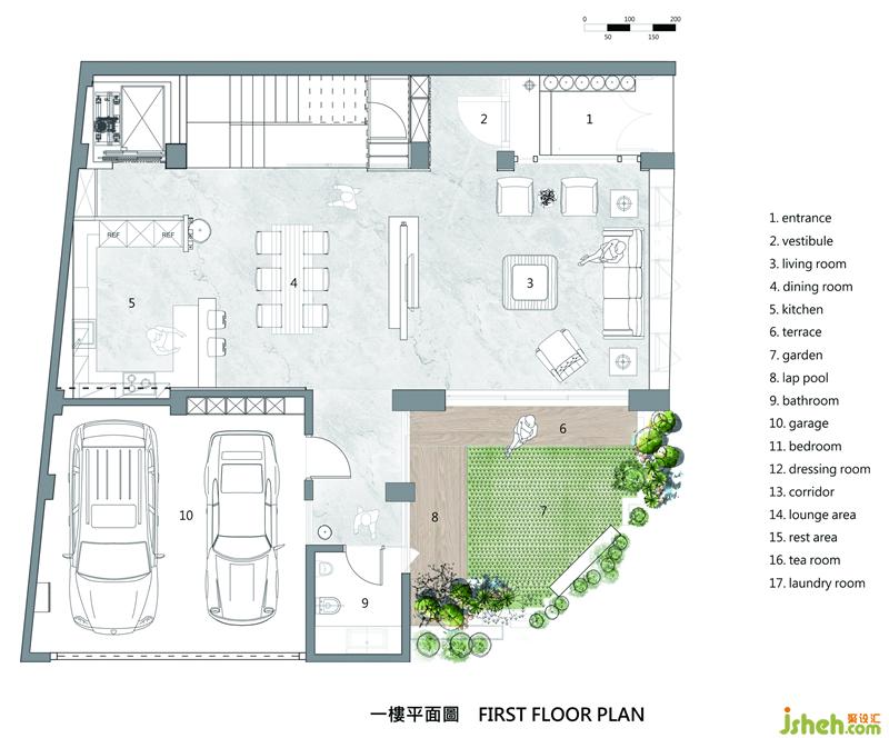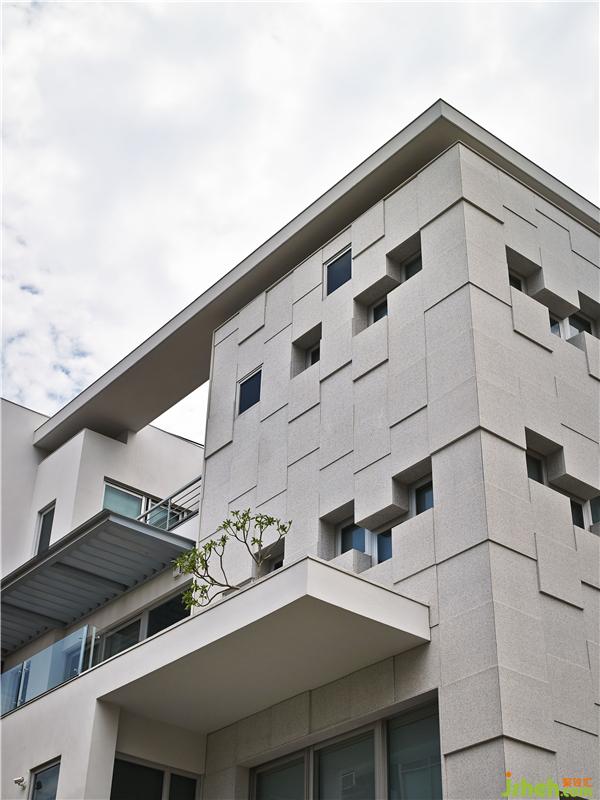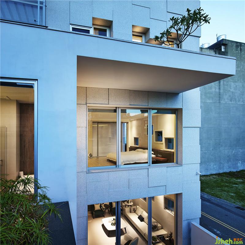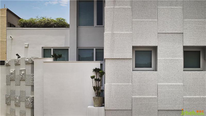 如雕塑般形体的外观,经过精密计算,让花岗岩板的尺寸与窗户尺寸相同,再利用石材不同的厚度,别墅设计呈现如雕塑般的外型。而灯光是建筑体重要的灵魂呈现。当夜幕降临,由门窗透出的光线亦展现出别具特色的建筑样貌,更悄悄体现设计者细腻而温柔的设计风华。