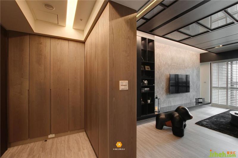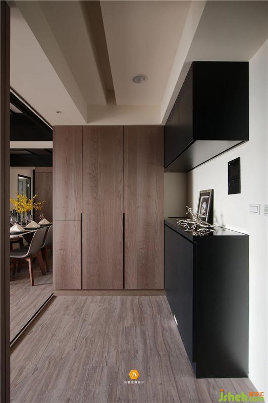 玄关处,设计师将以往华而不实的屏风舍弃,转而以更加实用的柜体作为屏风,一方面解决进门便看到客厅全貌的尴尬之境,另一方面也提高了空间的收纳能力,美观与实用两者合一;设计师还规划了落尘区,将归家所带回的尘土,止步于此,让整个空间无时无刻都以最佳状态迎接业主的回归。