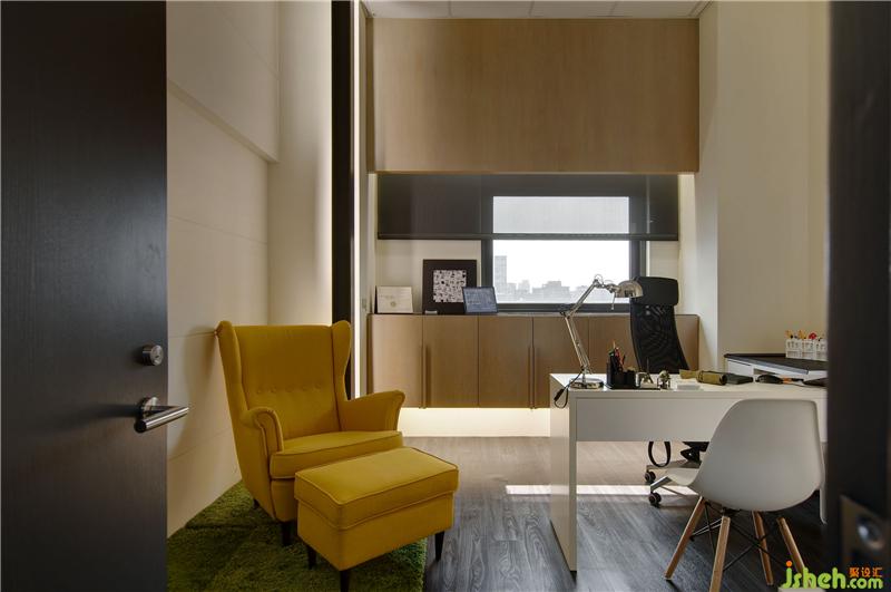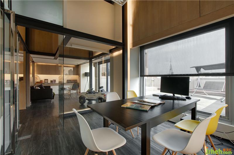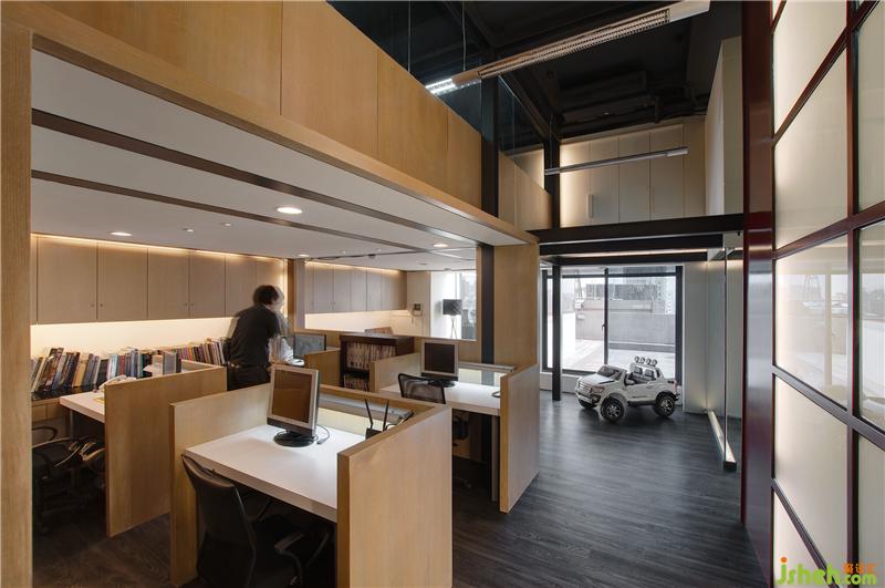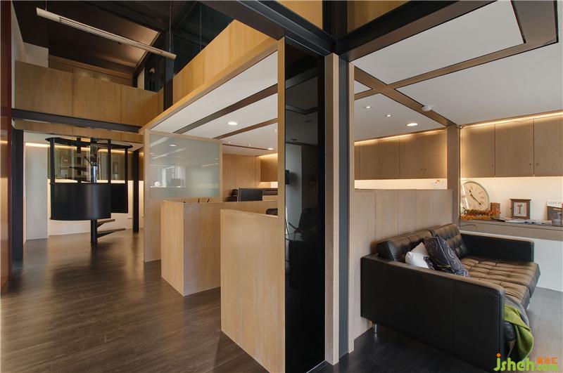 本案为建筑顶层的一个办公空间,面积虽小,但胜在层高空间还是比较足够的,而面对希望拥有较多空间的业主,如何才能满足业主的同时,让空间不会有拥挤感,显然这对于设计总监 陈逸群、钟馥如 来说,并不是什么困难的事情。