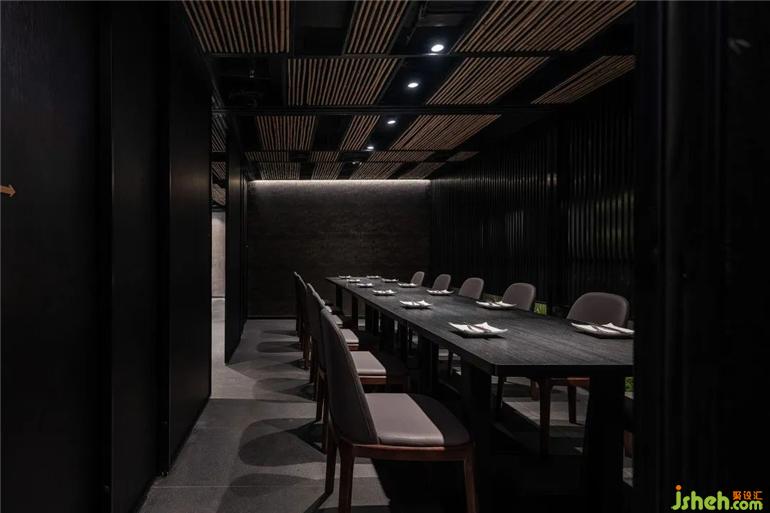 本案日料餐厅设计蕴藏对日料精神的思考,为顾客打造一处味蕾与身心的休憩场所,存续美好的味觉与感官体验,实现场景与情感的共鸣。原始材质的粗犷表达,保持朴实的本色之美。简洁素练的设计语言,凝聚为独特的视觉艺术,最终形成设计美学与商业价值的统一。