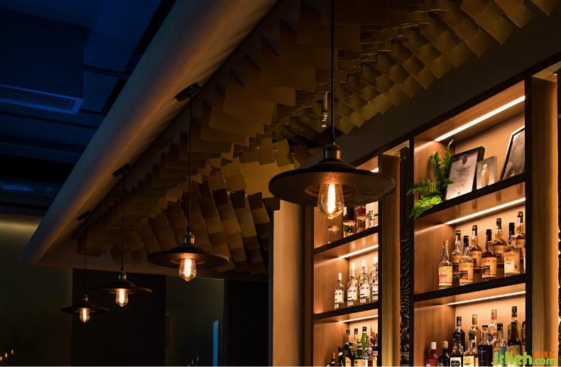 设计师在空间中融入热带风情茅屋的设计手法。不同于传统的热带风格,装修设计空间中结合了参数化金属面板,模拟热带植物的感觉,让整个空间有不一样的热带风情的体验感,空间更加灵动,更具趣味性。