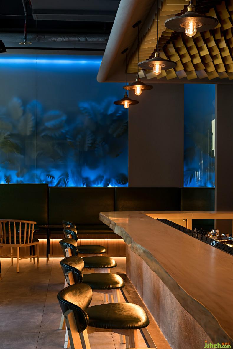 Designers integrate the design techniques of tropical cottage into space. Different from the traditional tropical style, the space combines add metal panels to simulate the feeling of tropical plants, so that the whole space has different experience of tropical flavor, space is more flexible and interesting.