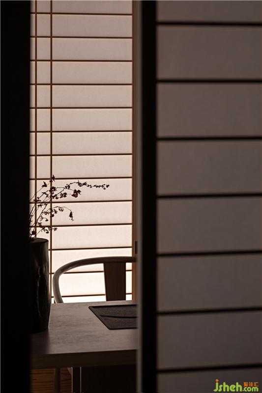 可移动木格栅,影影绰绰间,增添一抹纤巧灵动的意境。设计师希望通过茶道的恬静和朴素,将居住者平日的繁忙操劳之心得以释放,以达到对“和敬清寂”的精神追求。室内设计师