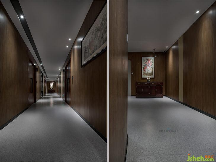 过道线条变化,护墙板的围合,墙加过道的气场。设计公司