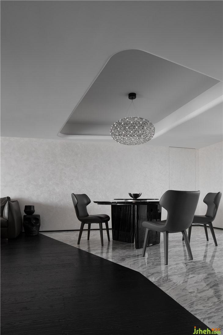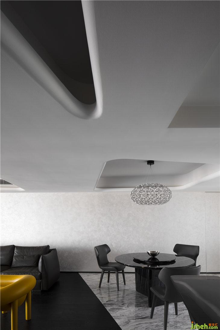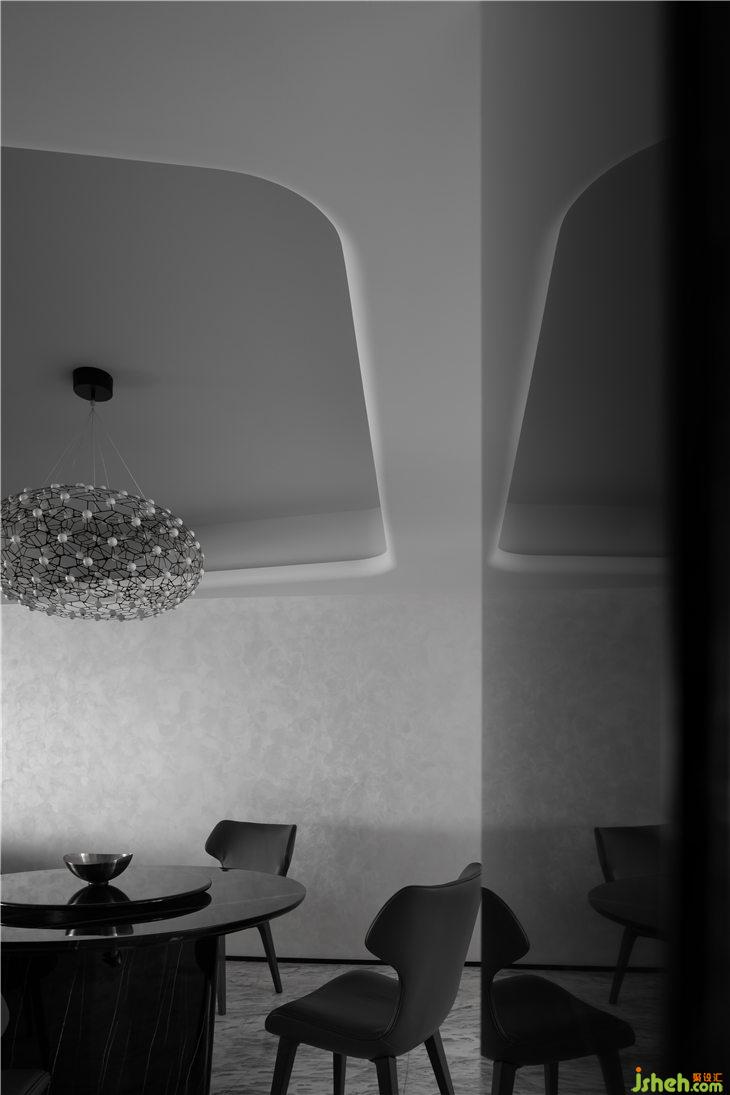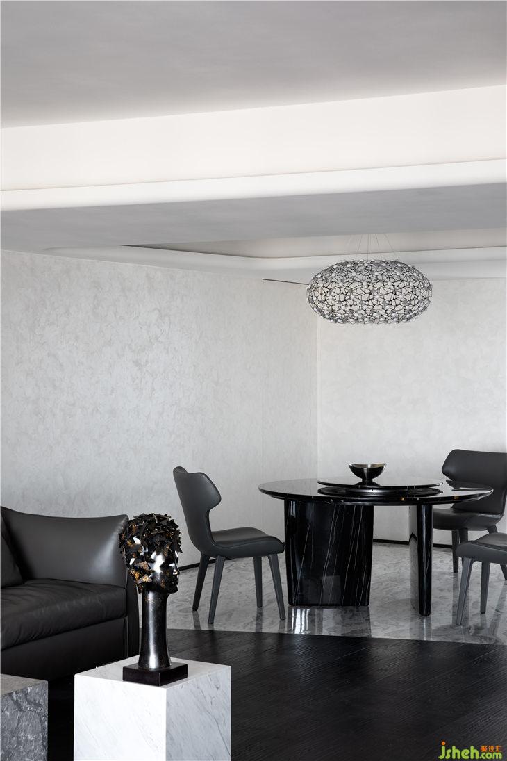 入户花园与客厅餐厅一气呵成,开放式厨房更丰富了空间的层次与节奏。在这没有传统的玄关与背景这种传统手段的界限,只有行云流水的韵律,没有动向的流动感,这样的生活是不被界定的。我们希望把一种自然的无章法的物体变得有规律,建立一种秩序。我们将一种抽象的物质不停的在空间中重复,来建立空间的和谐与精神。