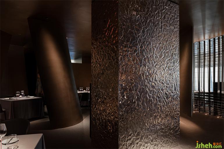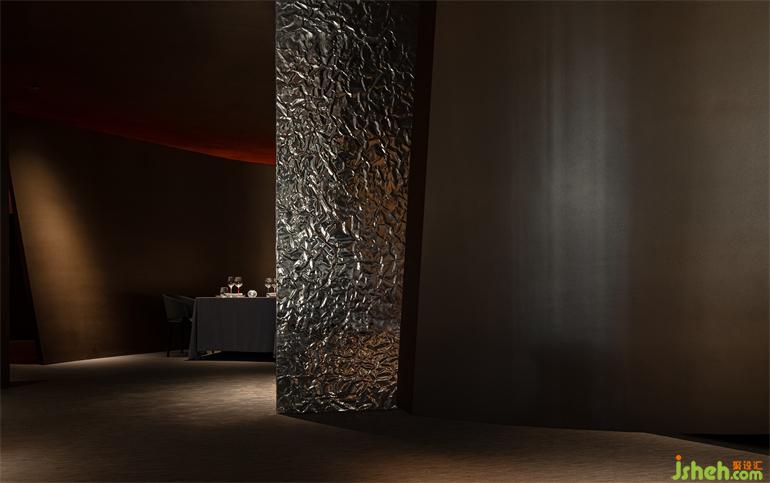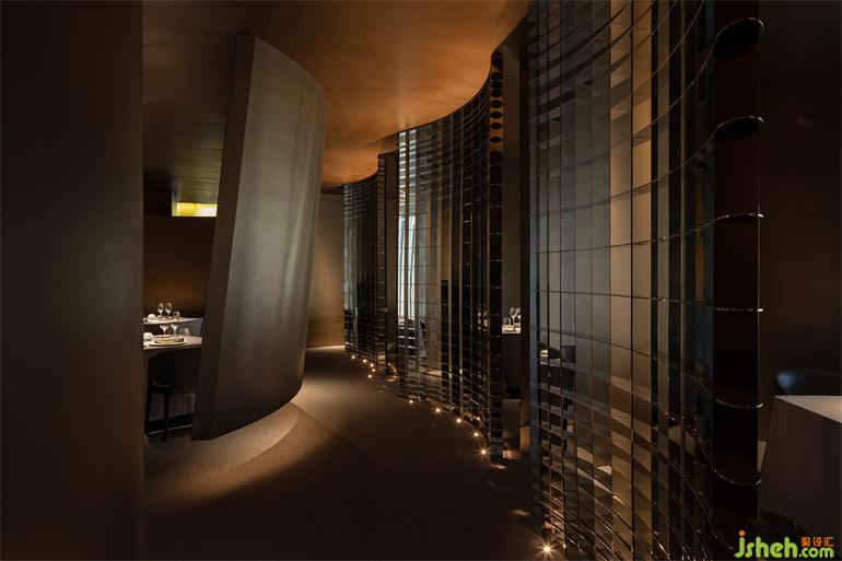 法餐厅餐厅设计一般都是以传统的空间形式来定义,这一次,艾克建筑团队做了一次实验性的尝试,颠覆了传统的法餐厅的空间形式,可内里依然营造一种法式的优雅与浪漫。如何融入法式环境的行为心里,而不是从表象去固化。餐厅设计所有的几何形体、自然的材料肌理、幽暗灯光、音乐等形式都是为了烘托这样一个有调性情感诉求,感受空间的过程就像在感受一场美妙的音乐会,神秘,美丽动人。一种体验,一种触摸得到的情绪。