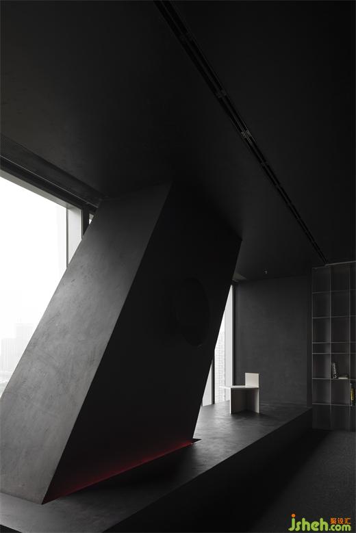 As night falls, the city and the cold office building are quite down. AD ARCHITECTURE wanted to alter such normality through design. Flame-like red lighting bursts out of the black box, bringing users to another dimension awash with seduction, ambiguity and illusion. It evokes rich emotions, and brings more surprises rather than fear.