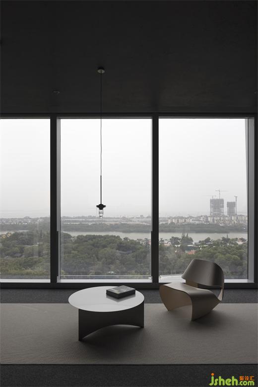 办公会所设计会客厅里意外的出现了总设计师的办公桌与阅读桌,办公、会议、接待、休闲没有绝对的分割,体现了团队自由、共享的理念。