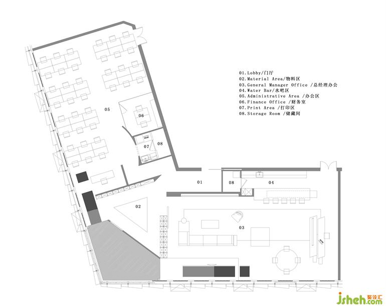 接待、物料展示、与办公区用最简洁的方式构成了艾克建筑的办公室,办公会所设计入口处形成了迂回的动线,摒弃大气的前台接待,让办公室整体保持一种更为私密的环境与神秘感。这是一种隐性的美好!