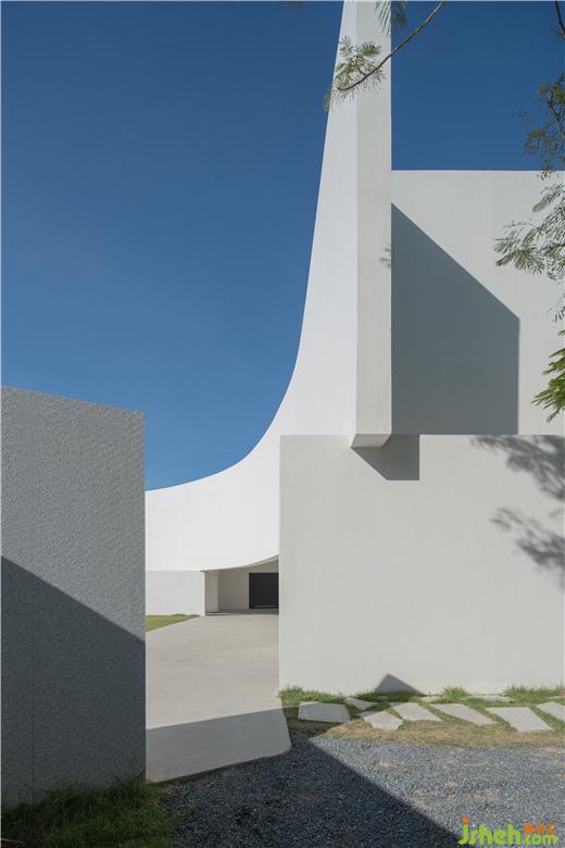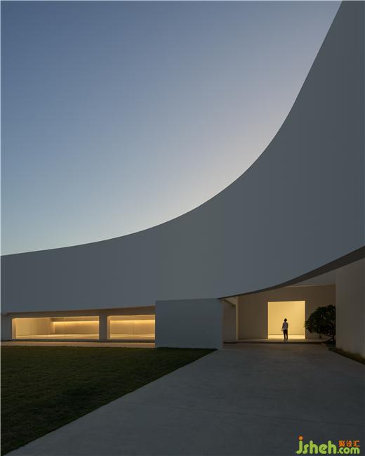 艺术中心设计除了物体本身,物体对周围的作用也是设计过程值得去思考的,天际线的突破是设计中的计划又略带意外的一个结果。建筑的力量可以集中在一条弧线上划破平静的天空,吸引了所有人的眼球,同时让平庸的村落变得具有唯美与艺术感。