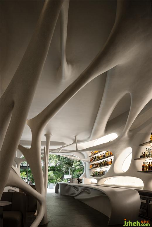这是艾克建筑首个咖啡吧与威士忌吧的空间探索。Tan90°酒吧设计项目位于深圳华侨城创意产业园区内部。深圳是一个充满可能性的城市,创意产业园更是聚集着一个具有疯狂思维输出的群体,整个创意园笼罩着一层文艺与艺术的氛围,各式各样改造的厂房,郁郁葱葱的绿化与自然的古树,这一切都引导着我们去思考,如何制造冲击与记忆是商业引流与复购的重要手段。