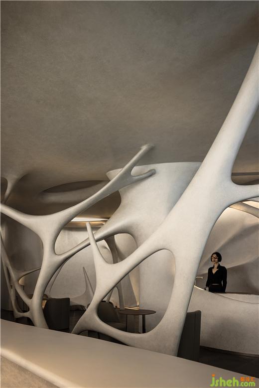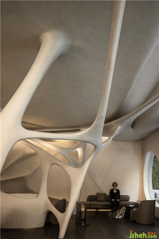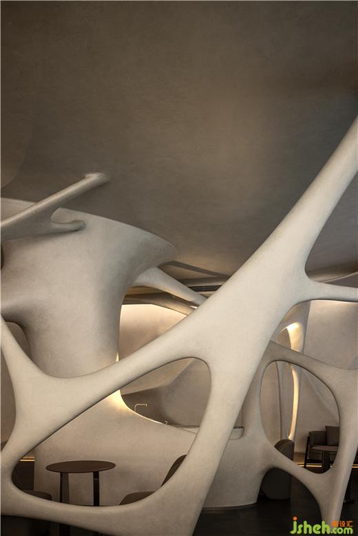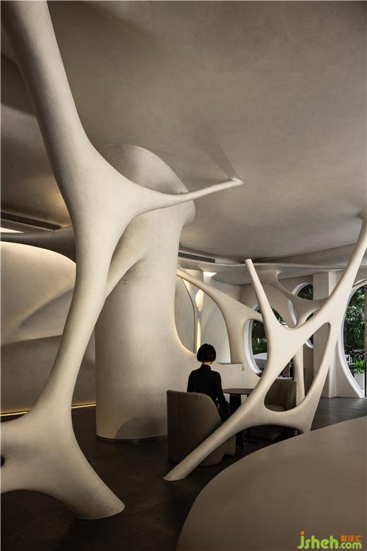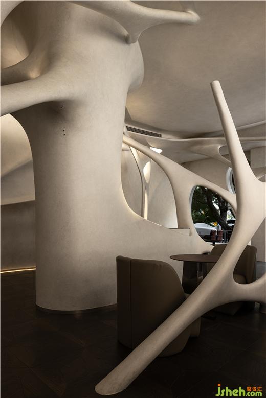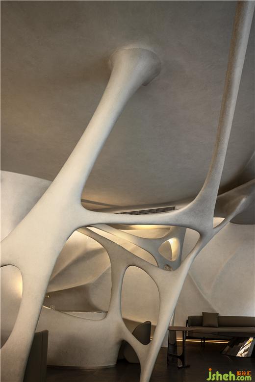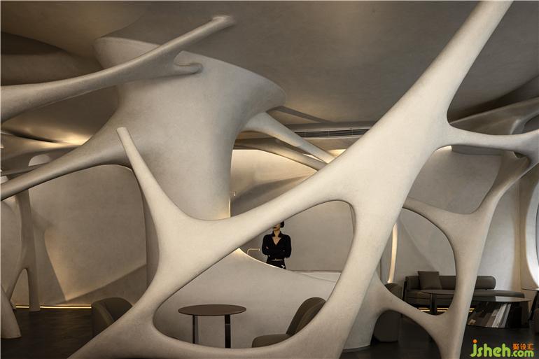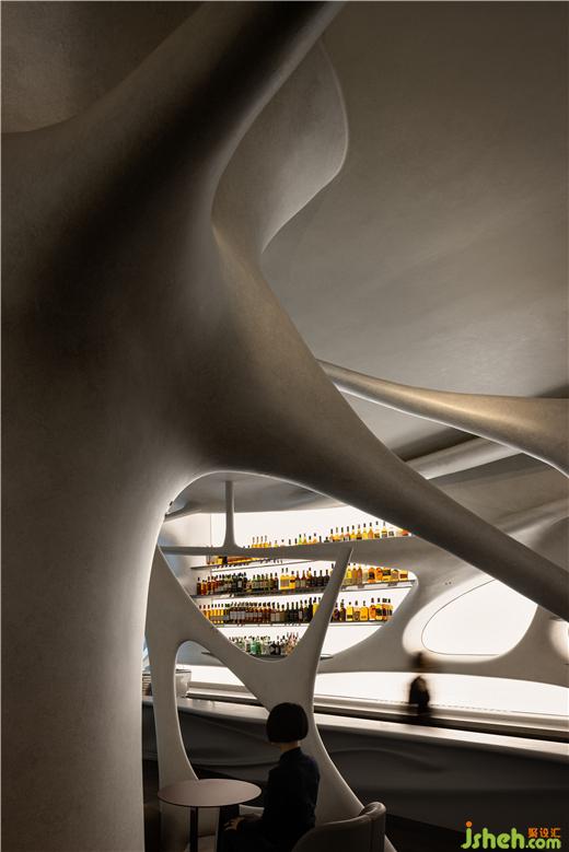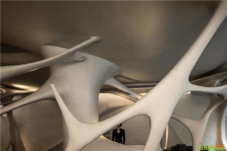 既有的形式放大化。我们看到的是一个复杂的空间场域,一个复杂的设计元素,每一个数据都存在差异化,他们之前没有复刻,这也是项目设计中激进的片刻,第一次以这样的方式进行空间的呈现。
