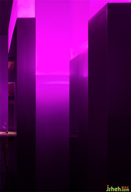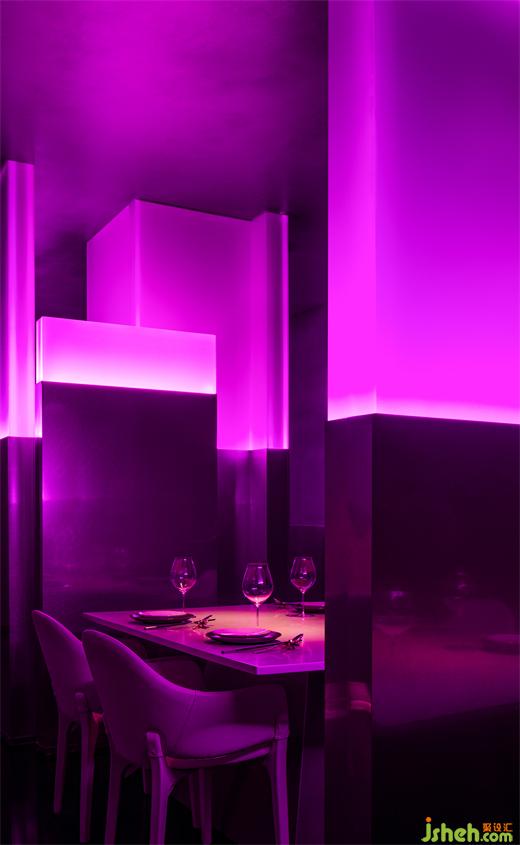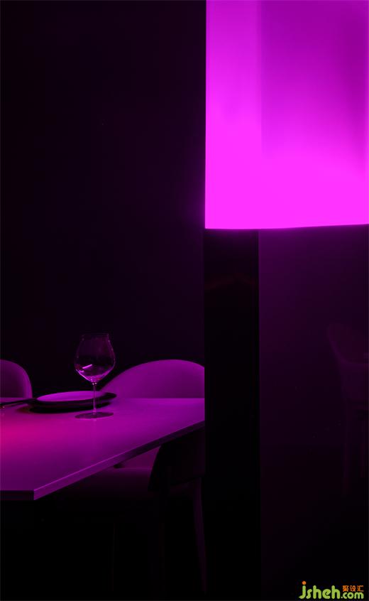 艺术餐厅设计空间通过画面的构成和内在光色节奏营造出一种冷调新潮的独特气质。理性的墙体与迷离的光圈交界,在人的参与下,产生不同故事的场景感,这种事件性是艾克阶段性的尝试,是一种可度量的空间逻辑。