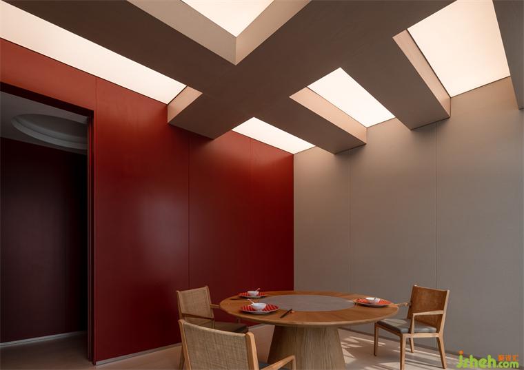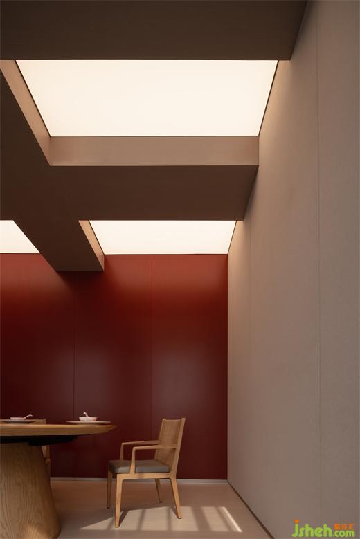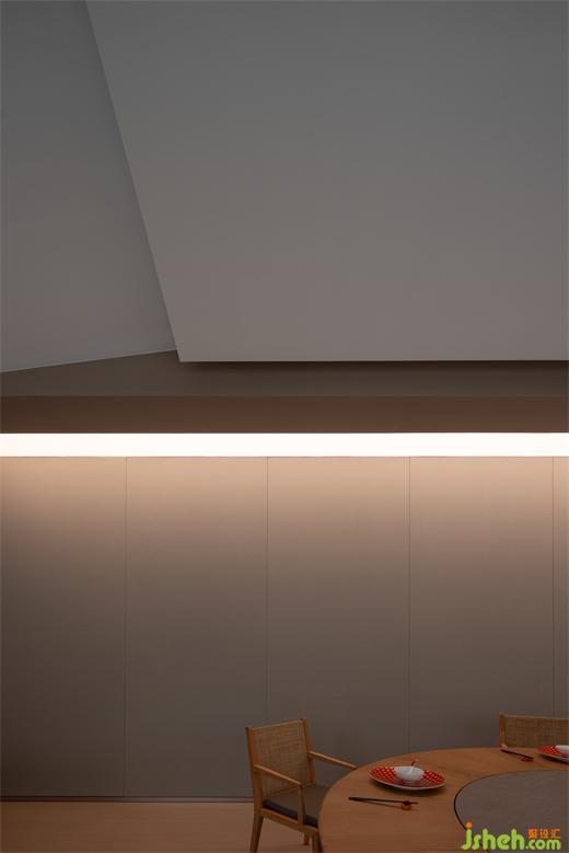 二楼进入我们视野的是前台接待与水吧功能结合的多功能服务区,深圳餐厅设计开放式的露台坐拥人间烟火,吧台顶部用当代的几何造型与手工编制的家具及户外家居编织质感的手艺进行碰撞,几何符号围合出了让人具有探索欲望的空间情境。笑看清浅流年,曲径通幽,张扬且含蓄,一场东西方美学与哲学的碰撞。