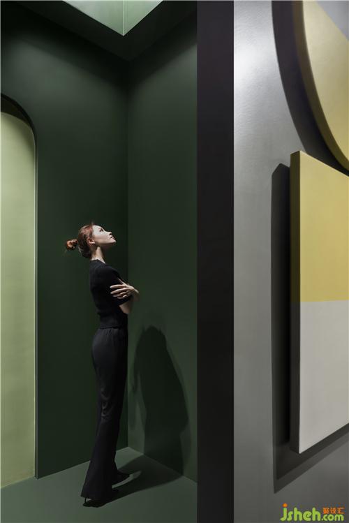 圆与方的图形界面之外,增加了拱形的元素,充当动线中的视觉导览,让观展的体验犹如穿梭于林间小屋。围而不合的空间序列中,人与人之间的联系不断渗透,互为彼此的框景,也在光影艺术梦境中寻获本真的自我。展厅设计