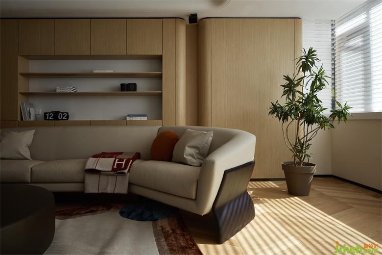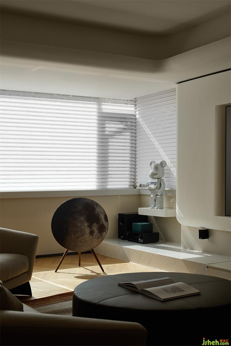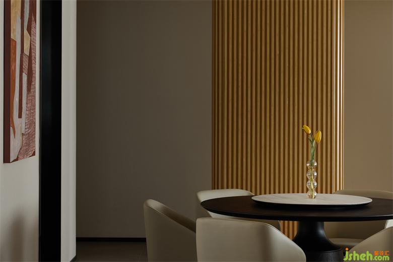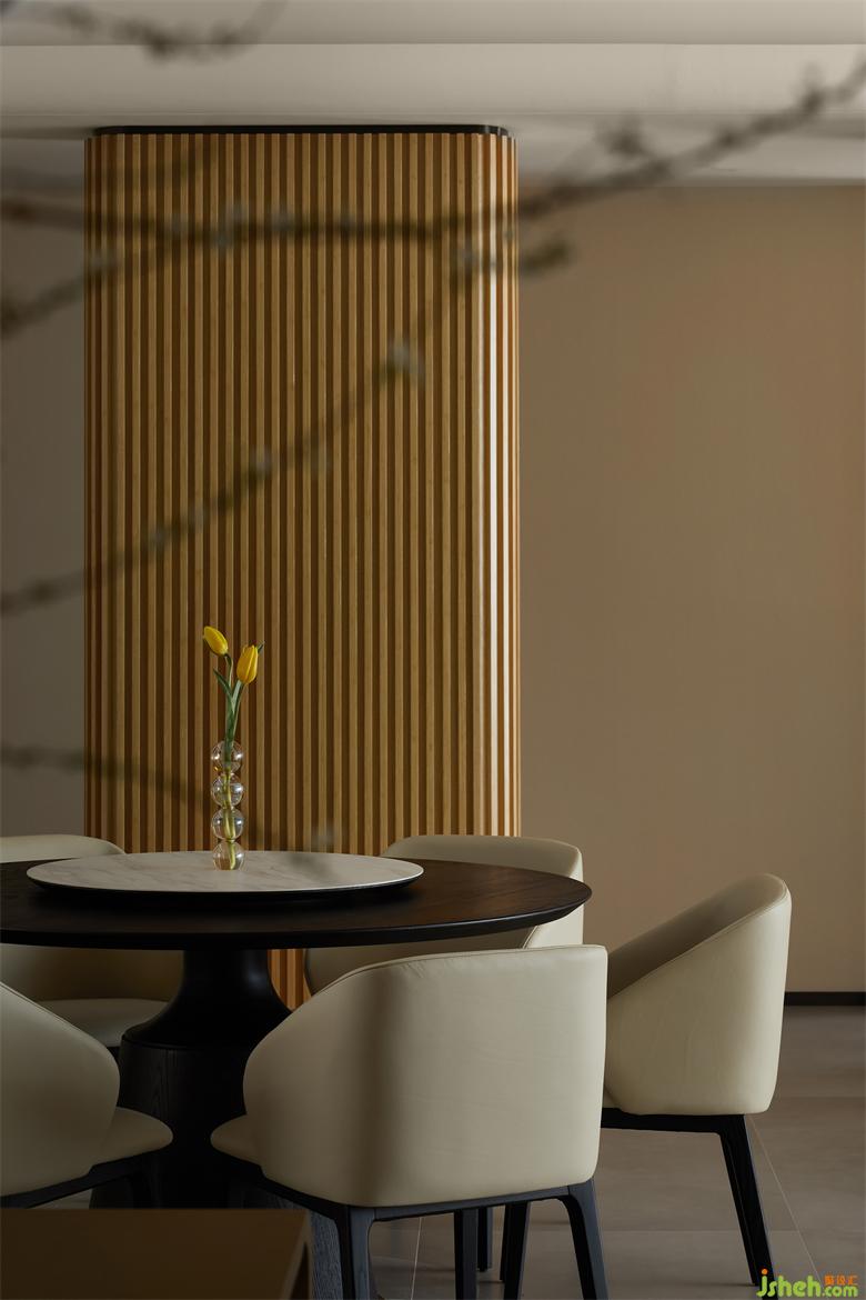阳光透过柔纱百叶帘照入室内,映射在实木材质上,花园叠墅设计一条条有温度的光束,无处不体现温暖的阳光、柔和的材质与亮堂的空间,用感官体验作为本案的设计出发点,置身当中的舒适感受需要多感官的共鸣。Sunlight gets through the soft curtain,shining on the wood material,the warmth of each light beam shows the sunlight,softness and brightness all around.Our design based on sensory experience because we need the aid of different senses to feel the comfort inside.
