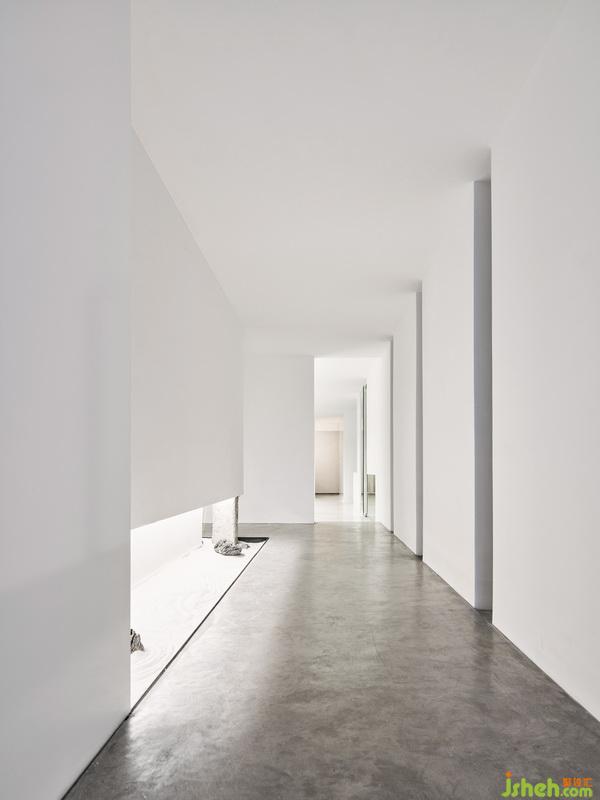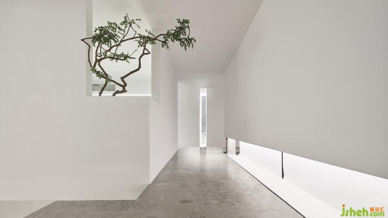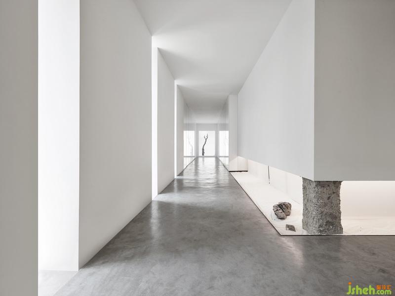 在走道每个静美的转折之处,我们布置了树、枯山水,和电雾玻璃布景,它们静静地出现其中,像是拔地而起的生命,为这里点燃了生气……背后的用意,就是让整个空间打破所有框架和定义,自如自由自成其韵。大到浑然天成的侘寂之美,小到细腻的明暗变化,都充满着惊心动魄的大美。