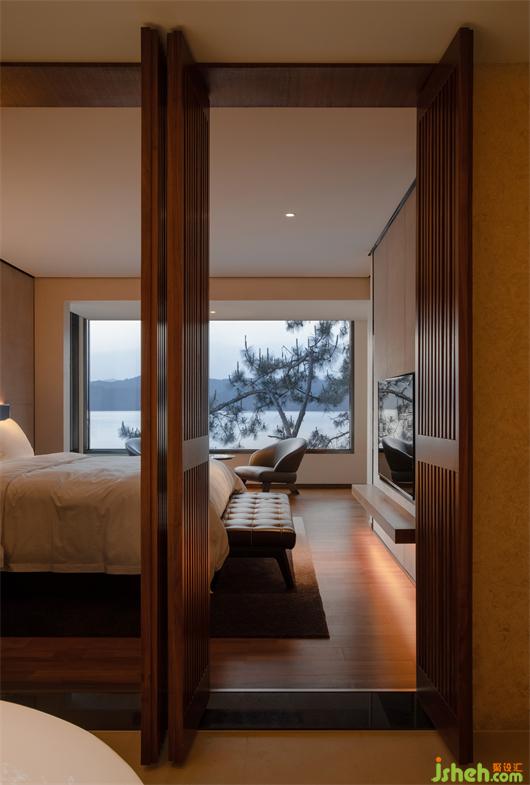 设谷没有让这座人工建筑叨扰了太平湖醉人的景致,反倒是安卓梅达以一种抱覆着地面的优雅姿态出现,酒店设计让极简风格少了几分惯有的正襟危坐,更平添许多亲近意味。