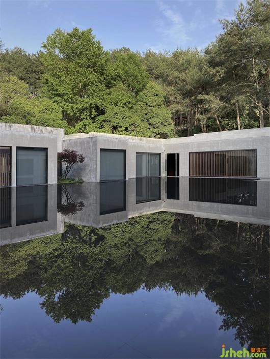 安卓梅达(Andromeda),取意天上的仙女星座,朦胧而美好,遥远而明媚。酒店依偎着如拙朴之翠的太平湖,在松林的掩映下俨然物外之境。远远看去,只一眼便动了心弦,被那份清水混凝土与几何结构所呈现出的柔美撩拨着走近,种进眸子里的却是山水翠色,倏然恍惚了来意。