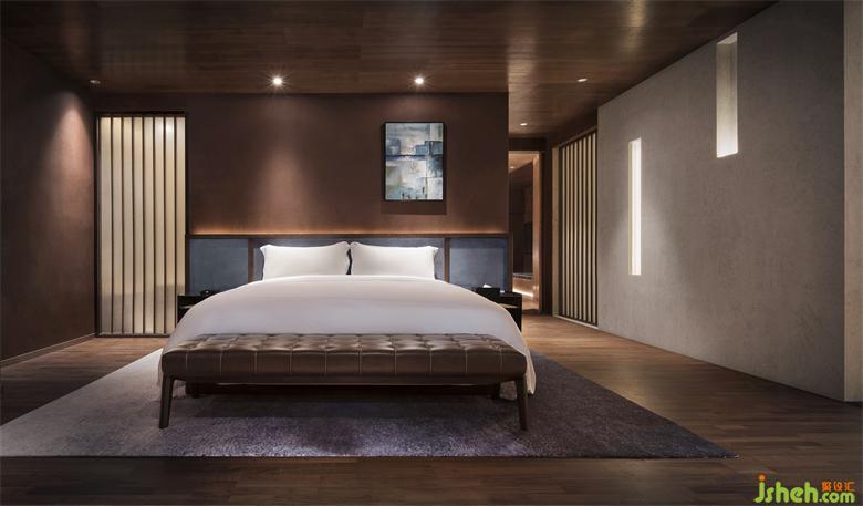 酒店大堂被小心地隐没在密林中,一路的柳暗花明使check in多了流程外的惊喜体验。酒店设计空间的灵动交错让建筑成为光的工具,太平湖的美景也就透过缝隙若隐若现地跳动在眼前。
