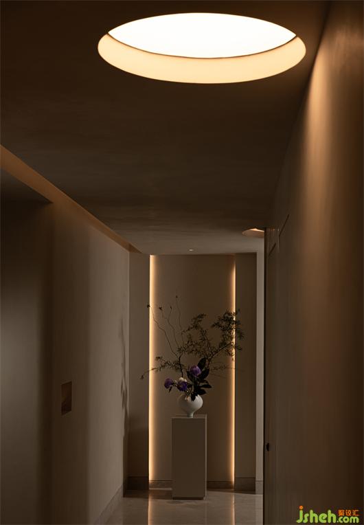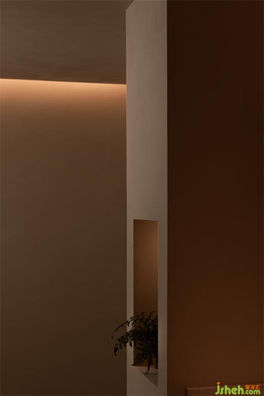 Vaulted ceiling, cream-colored stone flat roof, showing the aesthetic beauty of geometric nature, the whole space appears so empty, quiet. The air was filled with the aroma of tea leaves, and the sounds of birds and water echoed endlessly. The heart of the design is to mobilize the sense of sight, smell, hearing, touch and other senses, so that people calm down, deep in the quiet and peaceful space. The door slowly closed the moment, to realize their five senses of awakening.