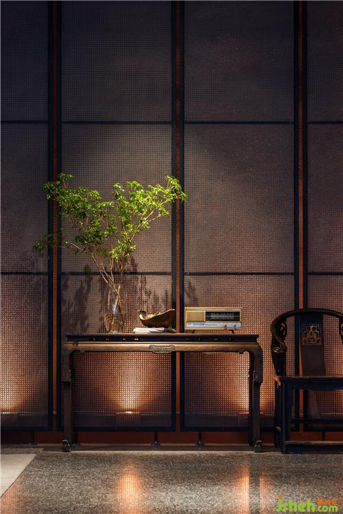 步入酒店,正面可见的是整面岭南传统藤编屏风墙,业主收藏的明清书桌太师椅,让空间增添了历史的印迹,负载了城市的记忆和灵魂。